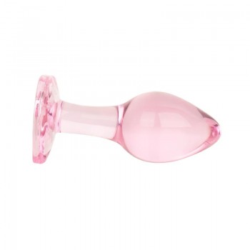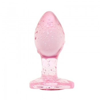 Add a touch of elegance to your anal adventures with this glass butt plug. Crafted from smooth pink ..