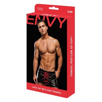Envy Menswear Lace-Up Wetlook Trunks pārdefinē mūsdienu vīriešu apakšveļu ar savu drosmīgo un pavedi..