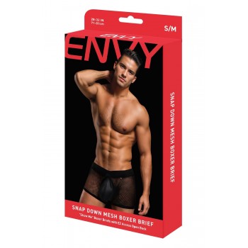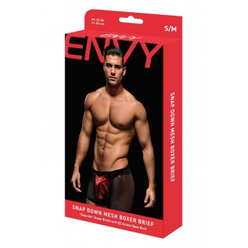 Iepazīstinām ar Envy Menswear Snap Pouch Mesh bokseršortiem melnā krāsā—drosmīgs un provokatīvs skat..