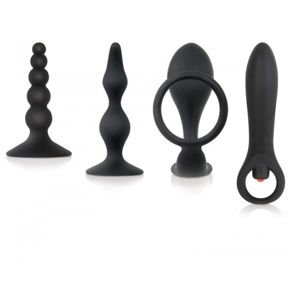 Discover the Prostate Play Kit: four satin silicone toys that progress from beginners to more intense levels. It includes hands-free suction cups, a penis and prostate ring, and an advanced vibrating toy. Learn with Dr. Ava's Guide To Prostate Play DVD and enjoy in the bathtub or shower, as all toys are waterproof. Super easy to clean. Mind-blowing orgasms guaranteed! 1 Prostate Stimulator without Vibration (Beads) Graduated beads offering a relaxed exploration of the prostate, with a flexible shaft and a suction cup at the base for hands-free pleasure. 9cm in length, 7.6cm insertable length, 2.5cm in width. 2 Prostate Stimulator without Vibration (Curves) Flexible silicone that adapts to the body's curves and a suction cup at the base for hands-free pleasure. 11cm in length, 10.7cm insertable length, 3cm in width. 3 Prostate Stimulator without Vibration with Elastic Penis Ring Flexible shaft allowing a snug and comfortable fit. 5cm penis ring width, 9.5cm insertable length of the stimulator. 4 Prostate Massager with Vibration Large diameter for advanced play, 1 vibration speed, 1 AAA battery not included. Length 14cm, insertable length 9.5cm, 2.5cm in width.