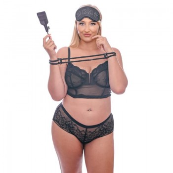 Keep them restrained with the included rope handcuffs in a stunning black with rose gold metal accen..