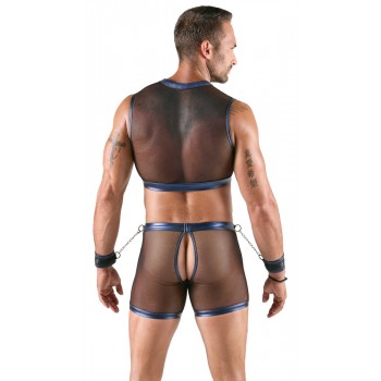 A captivating net look! A short, tight-fitting top, emphasising pants and 2 handcuffs from Svenjoyme..