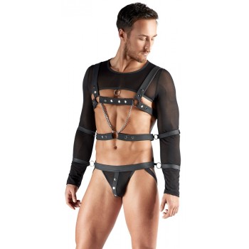 A captivating look with lots of extras! The black set from Svenjoyment BONDAGE contains a crop top, ..