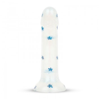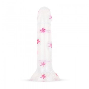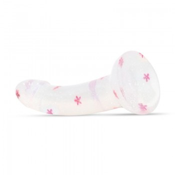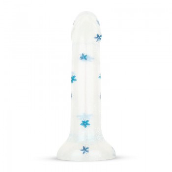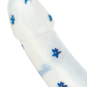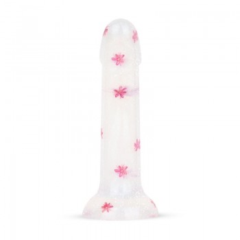 Looking for something fun and unique? This medium-sized dildo combines a playful flower and glitter ..