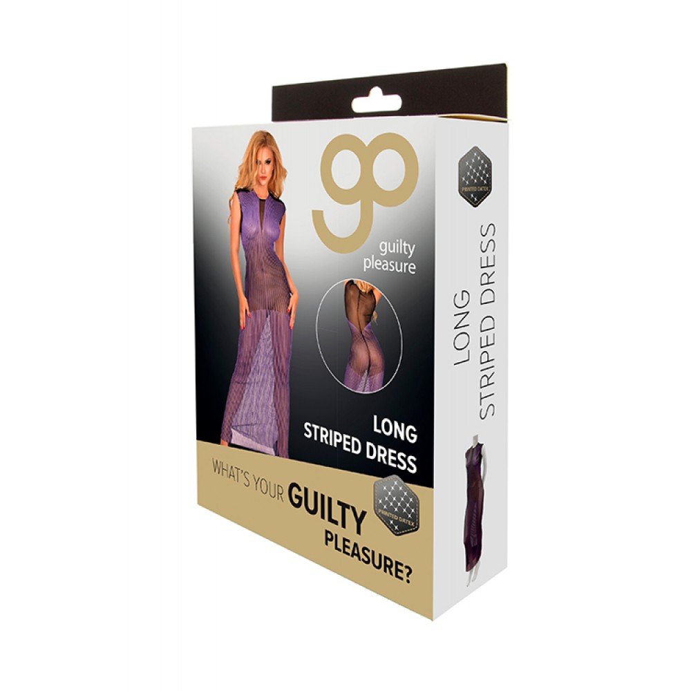 Iepazīstinām ar satriecošu gabalu no Guilty Pleasure Printed Datex kolekcijas: aizraujošu Datex kleitu ar iespaidīgu violetu svītru rakstu. Lateksa svītras rada apburošu caurspīdīgu efektu uz caurspīdīga melna auduma. Priekšpusē ir eleganta V-veida neapdrukāta daļa, savukārt aizmugurē svītras eleganti saplūst viduklī. Izgatavotas no elastīga materiāla, šīs svītras graciozi pielāgojas katrai jūsu ķermeņa līknei.Šī kleita ir veidota bez rāvējslēdzējiem vai aizdarēm, piedāvājot izcilu elastību un elastīgumu vieglai uzvilkšanai un noņemšanai. Izbaudiet maksimālu komfortu šajā seksīgajā garajā kleitā, kas ir ideāli piemērota sievietēm, kuras vēlas izcelties.Galvenās iezīmes:- Printed Datex apvieno dabisko gumiju ar elastīgu adītu audumu.- Latekss tiek drukāts pievilcīgos atvērtos rakstos uz ļoti elastīgas bāzes.- Materiāla elastība un izturība nodrošina, ka tas nesaplaisās, piedāvājot izcilu komfortu.- Savienojiet ar jebkuru GP fetiša apģērbu priekšmetu, lai iegūtu patiesi satriecošu ansambli.Lai iegūtu kopšanas instrukcijas un izmēru tabulu, [noklikšķiniet šeit](https://yourwebsite.com/downloads/Datex-Care-instructions-and-Size-Chart.pdf).