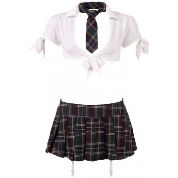 Top/Slip: 95% Polyester, 5% Elastan. Rock/Krawatte: 100% Polyester. Stockings are not included...