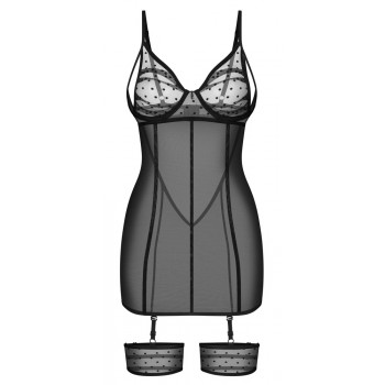A sexy and seductive look! The tight-fitting chemise, Nuites from Obsessive, has suspender straps at..