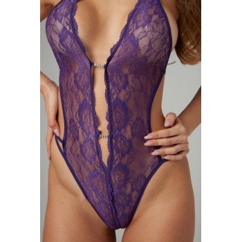 Lace body made of translucent fabric. With open crotch and adjustable straps...