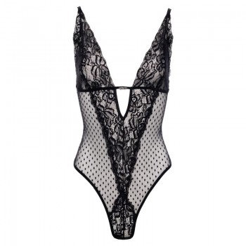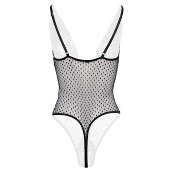 Luxurious, sensual bodysuit. Playful design with lots of lace and polka dot pattern. Non-padded tria..