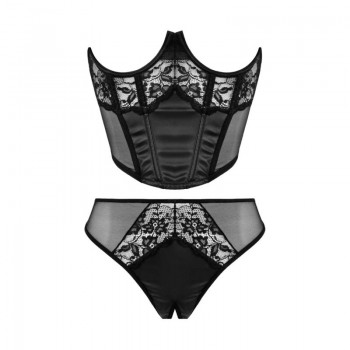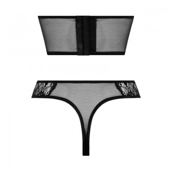 Discover the art of subtle temptation with the Iliosa set. This black lace bra, paired with a daring..