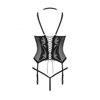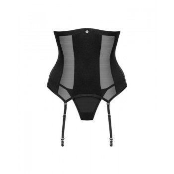 Black corset with suspenders. The cups are non-preformed and without underwiring. Soft and elastic m..