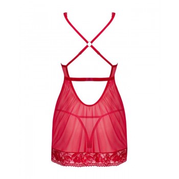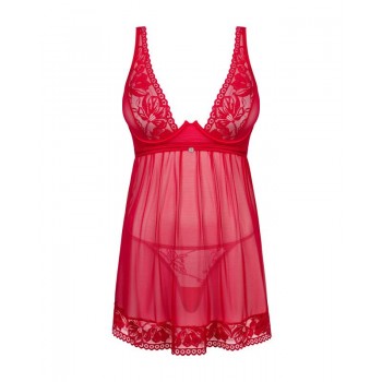 This alluring set of lingerie in intense red color will steal your heart. The babydoll features lace..
