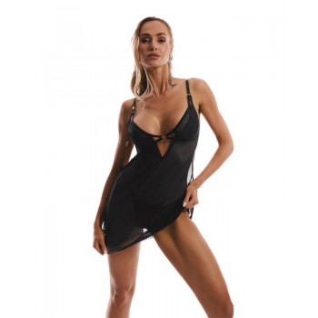 The Obsessive Chemise & Thong Black combines elegance and seduction in an irresistible set. Delicate..